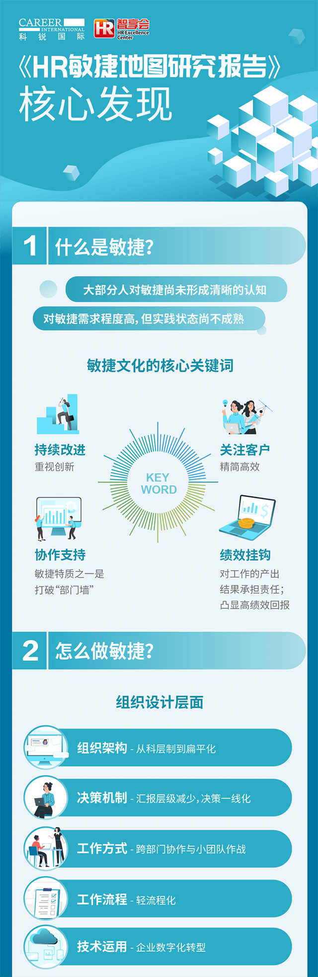 对于组织而言,有哪些工作方式、要素帮助组织敏捷起来?为了更好地助力组织的敏捷,人力资源团队做了哪些调整?为了探究以上问题,凯发K8国际人力资源公司联合智享会发起了“HR 敏捷地图”调研研究。问卷调研了三百余家企业,分析现在企业对“敏捷”概念的认知,和组织敏捷的现状。顺利获得深度采访十余位大型企业的人力资源一把手,探究组织敏捷实践场景以及人力资源在其中的助力之处,以及为了更好地助力组织敏捷人力资源团队自身在架构、能力等方面的调整。